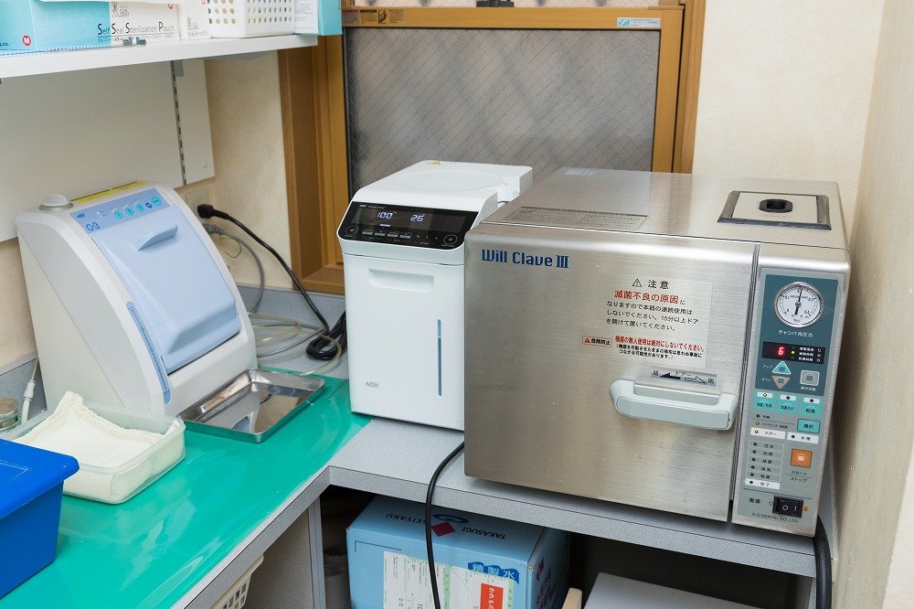 院内の換気や除菌はもちろん、口腔外バキュームを各診察台に設置することで、診療時に水や唾液が飛び散るのを防いでいます。